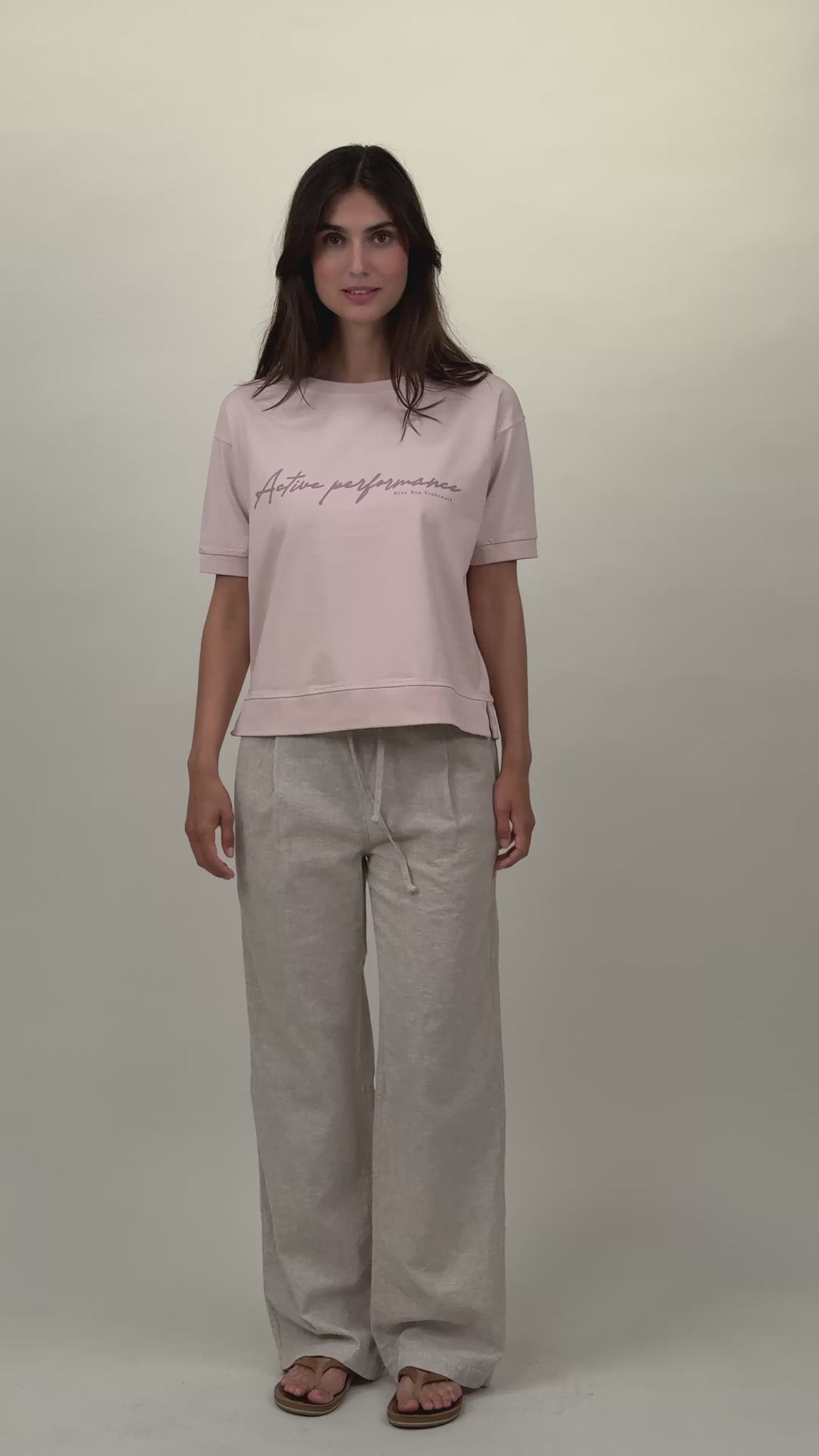 A short-sleeve blouse crafted in cotton jersey with stretch and a lightly washed surface. Designed in a wide fit with dropped shoulders and a straight silhouette with an antique wash/vintage look.