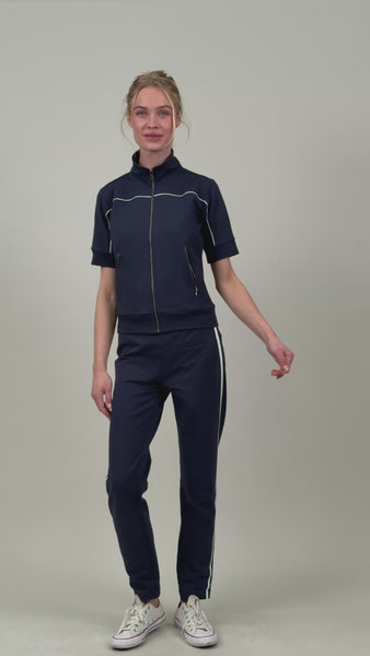 A short zip-front jacket crafted in unbrushed Pima cotton with a smooth, structured surface. Designed in a short, tight fit with a straight silhouette, finished with a high neckline and clean seams.