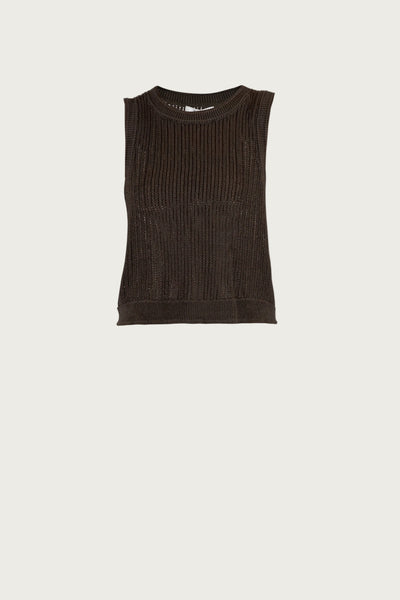 A sleeveless knit top crafted in a linen, cotton and polyamide blend with a soft washed finish and fine rib structure. Designed in a regular fit with a clean neckline and structured hem.