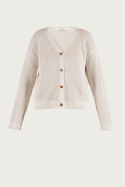 A cardigan knit crafted in an organic cotton and linen blend with a soft washed finish and a lightly textured rib structure. Designed in a regular fit with a clean silhouette and classic button closure.