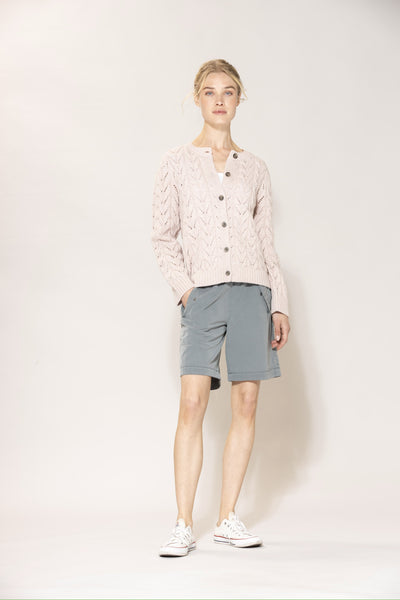 A cardigan knit crafted in a wool and cotton blend with a soft washed finish and a defined cable knit structure. Designed in a regular fit with a balanced silhouette and a structured yet soft hand feel.