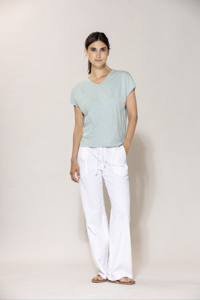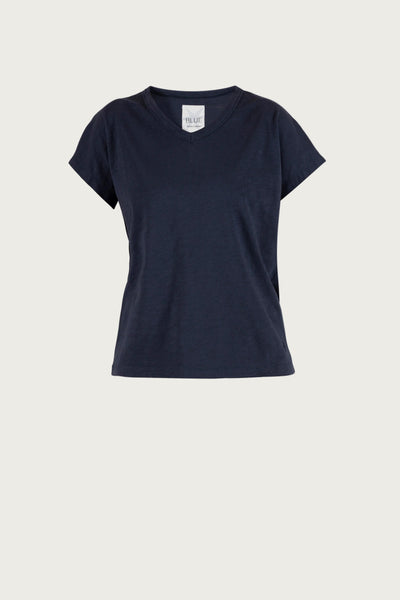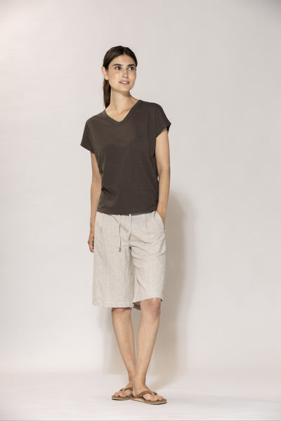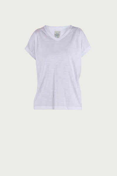 A lightweight tee crafted in a flamé cotton quality with a naturally breathable feel and subtle textured surface. Designed with a wide chest and a relaxed silhouette that falls straight on the body.