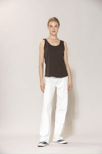 A sleeveless top crafted in a lightweight flamé cotton quality with a soft, smooth feel and visible texture. Designed in a regular fit with a straight, clean silhouette that follows the body without clinging.
