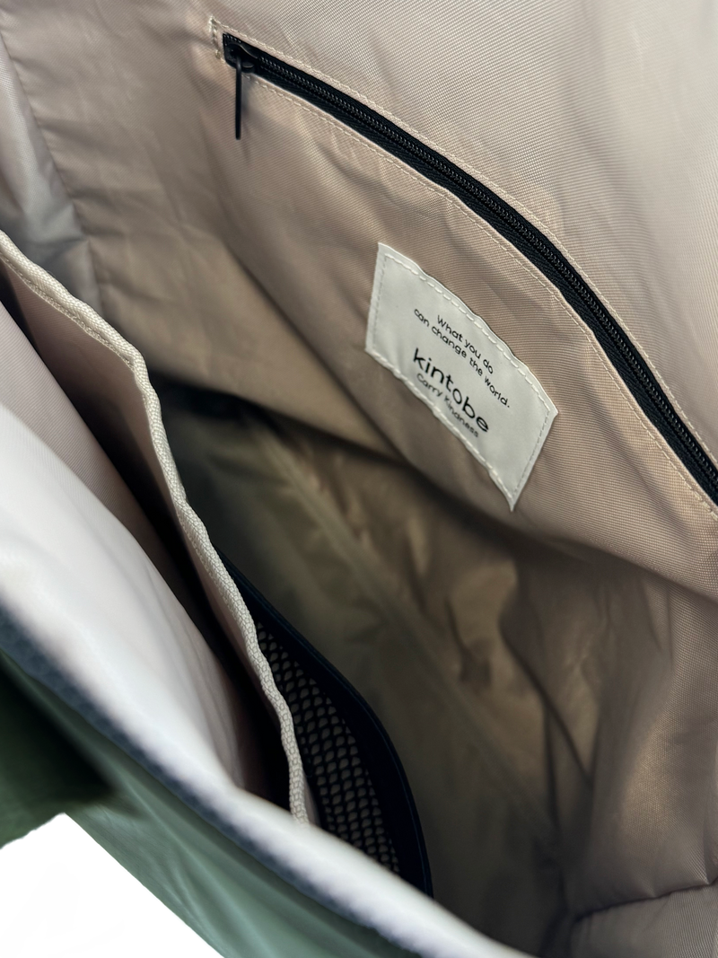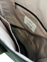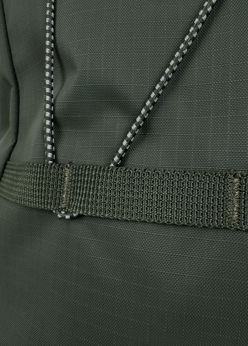 - 100% recycled polyester: Lining, mesh, thread, interior label, padding, zipper tape, cord, care label, nonwoven reinforcement