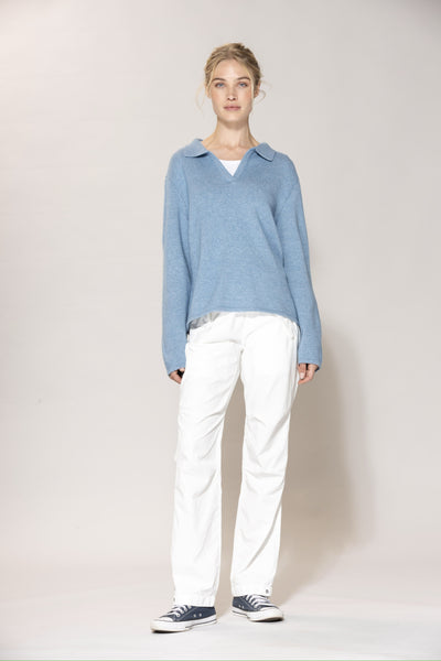 A long-sleeved polo knit crafted in a wool and cotton blend with a soft washed finish and a smooth, even knit surface. Designed in a regular to loose fit with a clean silhouette and subtle structure.