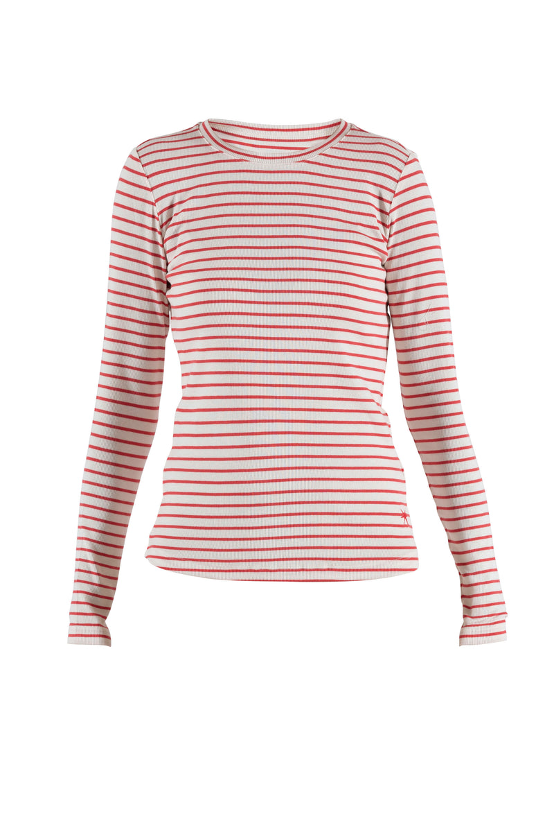 Ditte Striped Rib Tee - Ecru/Coral