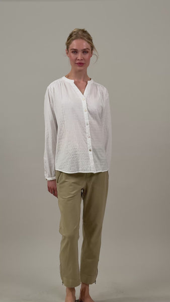 Pants crafted in cotton with stretch and a pigment-dyed, lightly washed surface. Designed in a regular fit with straight legs and an ankle-length cut with an antique wash/vintage look.